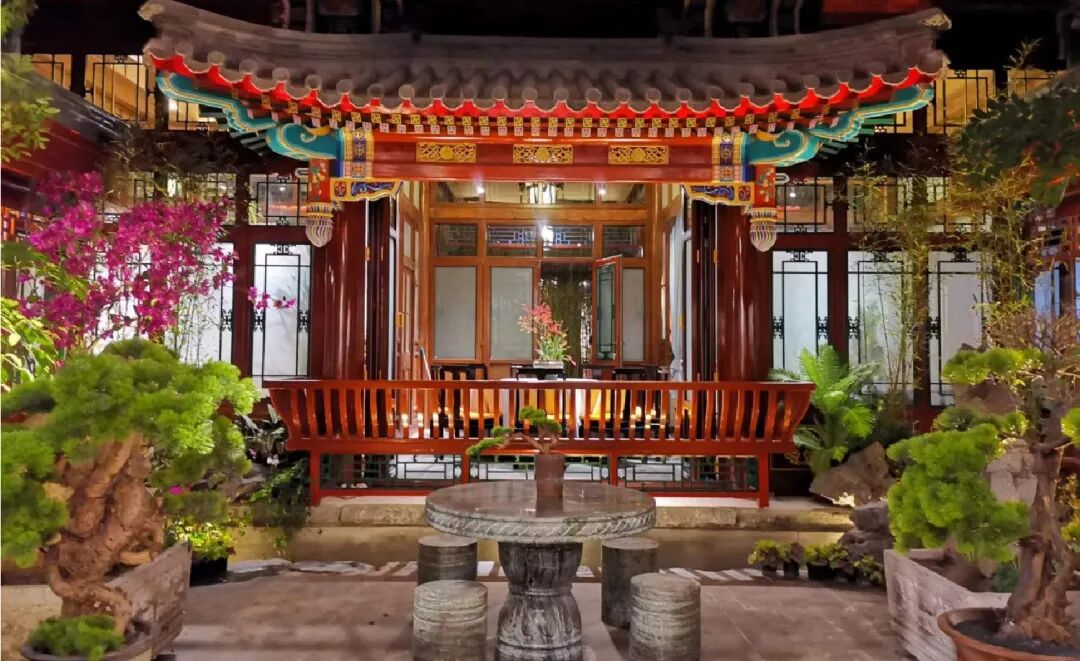 以传统的四合院布局为核心,木质结构的屋顶与精致的雕花交相辉映。
