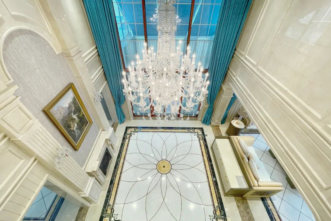 大理石地板的优雅图案与整体装饰风格和谐统一,每一步都踏出了优雅与高贵。