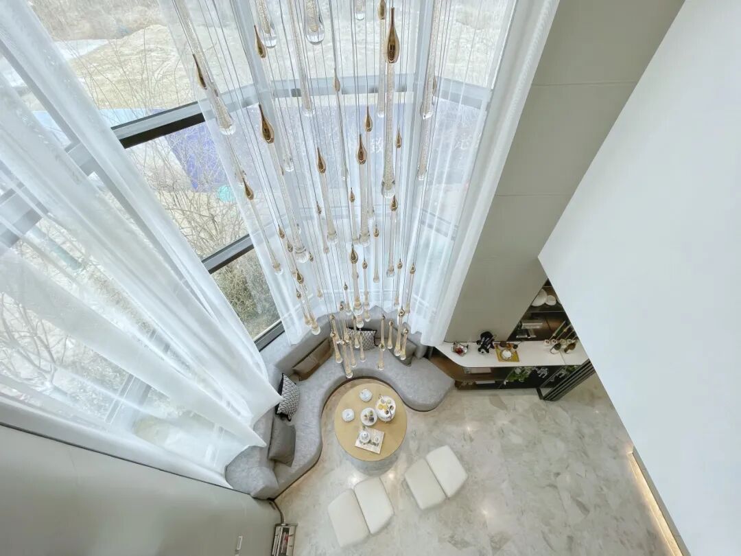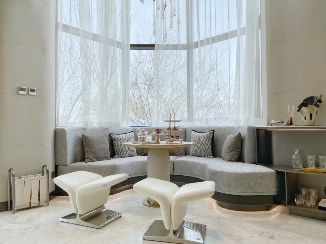 6.6米挑空早餐厅设计,270°全景客厅配以超大窗扇的落地窗,将温榆河湾的四季美景尽收眼底。