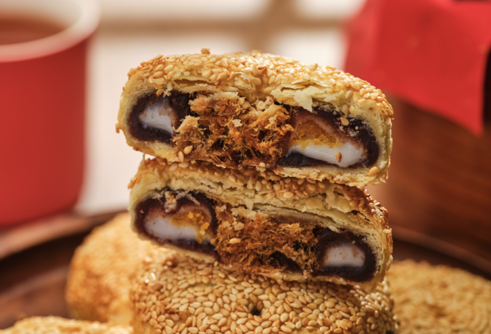 【咸鸭蛋蓉】、【猪肉肉粉松】四大美味馅料。