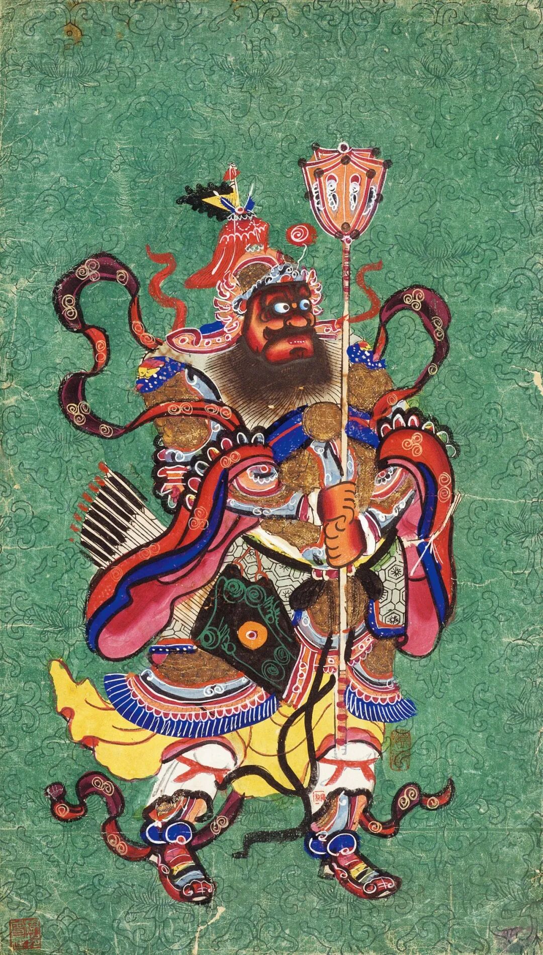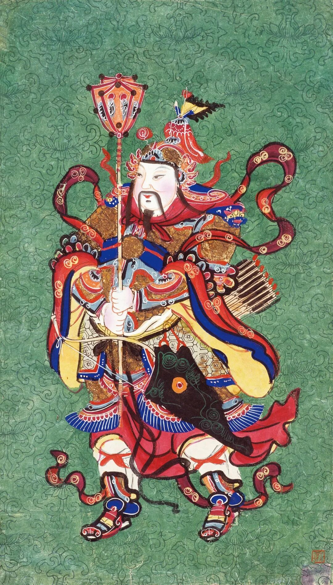 一张来自雪域高原的“明信片”,讲述着那个民族的神圣世界。藏族唐卡,藏语意为“卷轴画”,是一种集绘画、刺绣、贴金等多种技艺于一体的宗教艺术表达形式。初期它主要用于宗教仪式的供奉,后逐渐成为包裹着鲜明的民族特色和浓郁的宗教色彩的艺术之作。以绿松石、朱砂等天然矿物质为颜料,细细研磨和调配,使唐卡色彩艳丽而庄重,岁月境迁而不褪色。2021年,藏族唐卡(郎卡杰唐卡)列入国家级非遗名录。▲ 藏族唐卡。供图/张添福,中新社青海分社