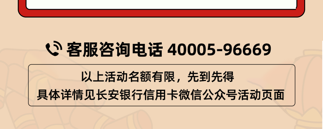 (七)我行有权在中国法律允许的范围内解释、修改、变更本活动的条款及细则,客户参与活动即视为同意遵守本次活动内容及规则,我行对活动享有最终解释权。详情咨询长安银行信用卡客服电话40005-96669。