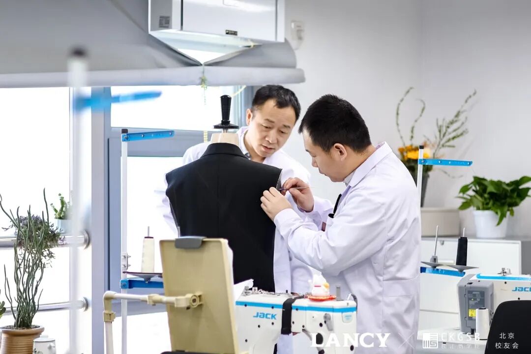 随后,参访团移步至朗姿大厦二层朗蕙所,通过莱茵品牌设计总监Jason的介绍,深刻了解到朗姿服装板块时尚女装品牌LANCY(朗姿)、LIME(莱茵)、MOJO(卓可)、及绿色婴童品牌ETTOI(爱多娃)不同品牌的产品风格,并且通过手工定制工坊的现场手工艺展示,了解到一件饱含精工细作的时尚成衣的定制过程。