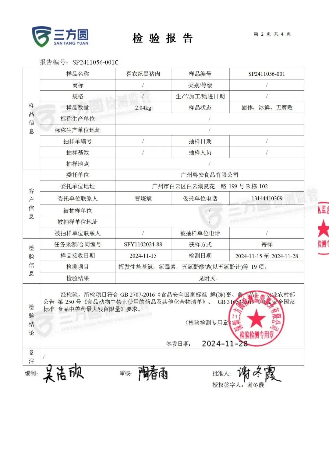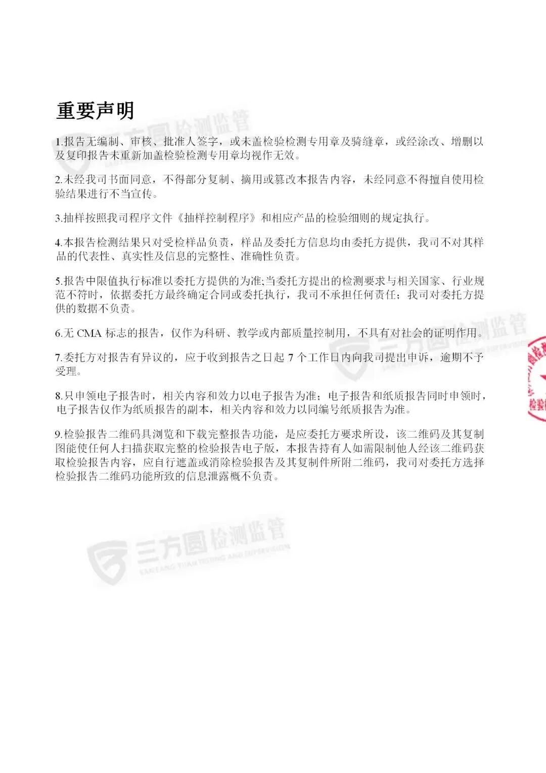 各项质检报告合格