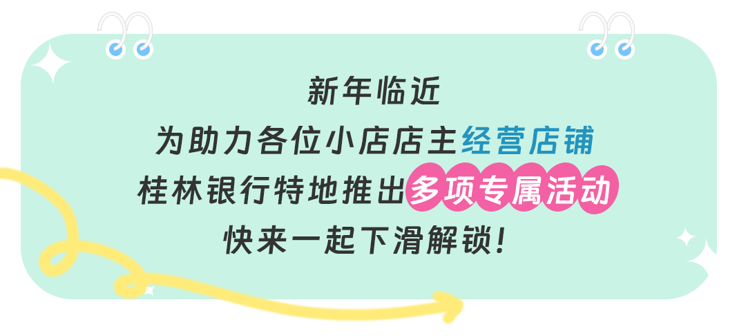 摘要:桂林银行将继续伴您左右,助力店铺经营更给力~