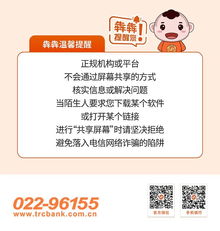 文章内容来源于公众号:天津农商银行,点此可查看原文,内容版权归相关企业所有,本网站仅供交流学习。若涉及版权问题或存在侵权情况,请及时与我们联系,我们将第一时间进行删除处理。