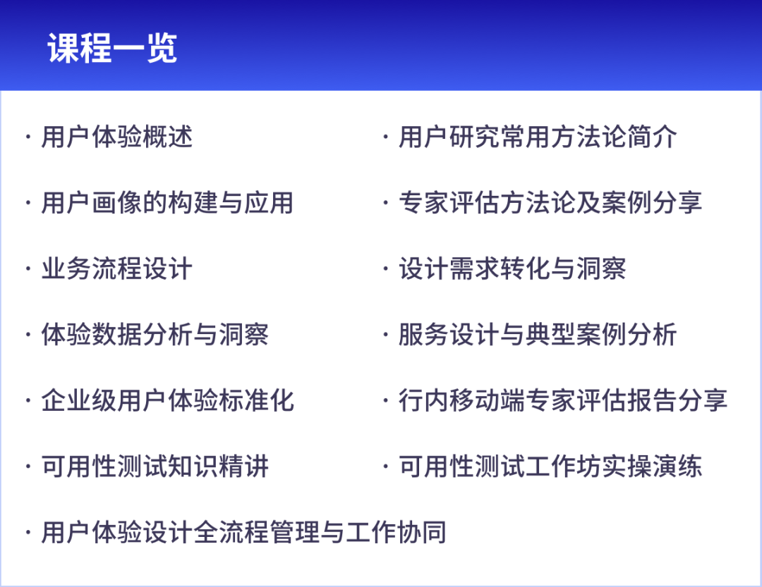 外部讲师团队教授了视觉交互设计的基本原理、业务流程与服务触点的优化设计、负向体验管理与优化的方法论、如何创造惊喜体验提升客户满意度。丰富详实的课程充满了干货和实战案例。