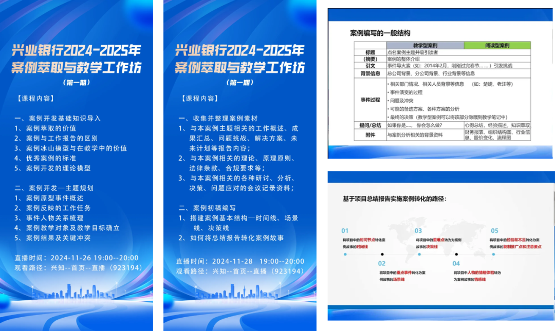 总行级案例建设工作自今年7月启动,8月开展方法论梳理和标杆调研,系统了解哈佛、毅伟商学院,清华经管、华为、建行、中行等标杆案例组织经验,选取毅伟和清华两种方法论指导实践;9月完成模板定制,10月完成样例访谈,11月产出两种方法论下的样例。