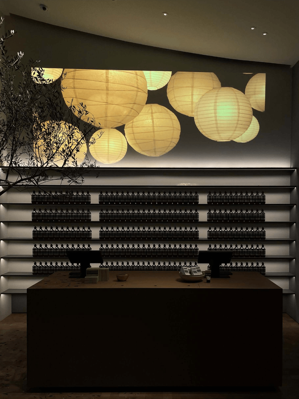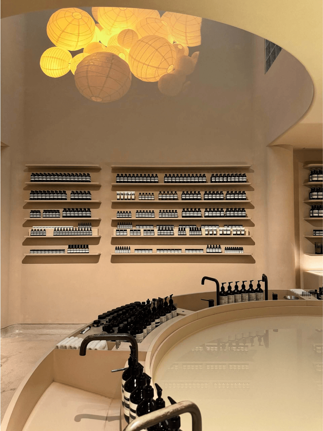 ● Aesop 伊索杭州万象城店水槽上方由油纸制成的吊灯