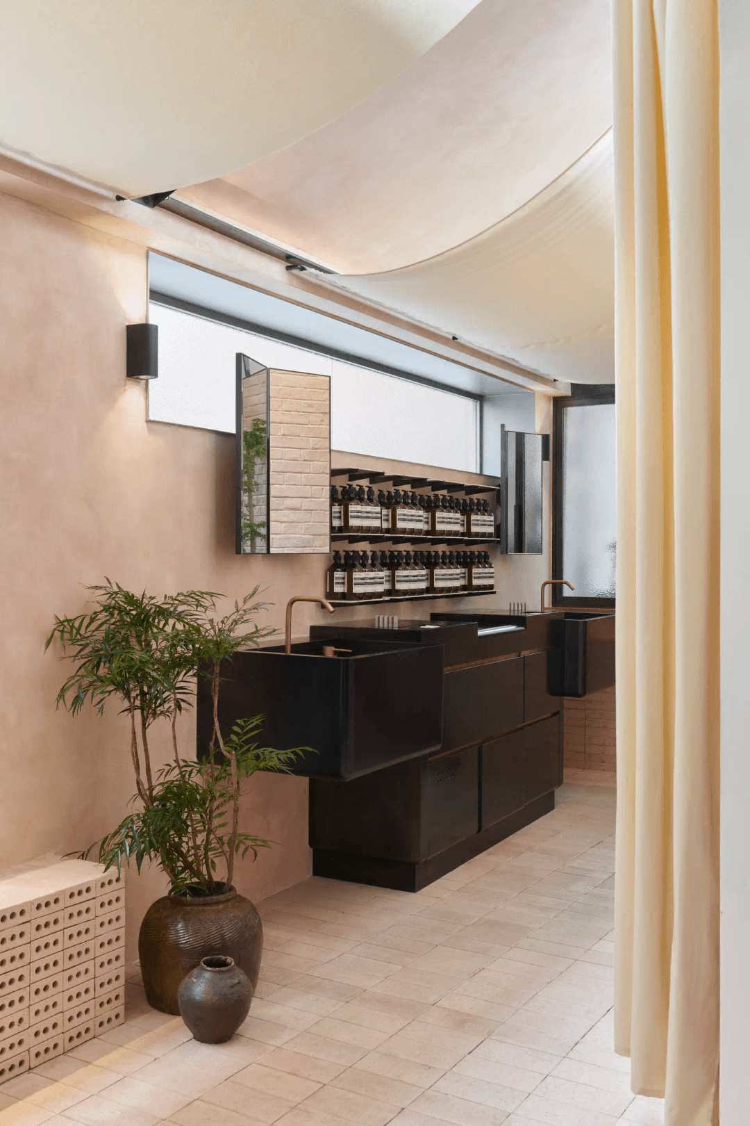 ● Aesop 伊索广州东山口店,在以“家”为灵感的空间中,中央水槽取代了餐桌的位置