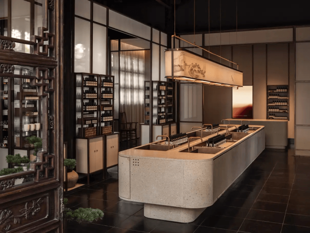 另一方面,则是每间店铺因地制宜的设计所带来的“惊奇感”,以及用材质、线条和富有风格的装饰品构成的层次感——这亦是 Aesop 伊索店铺的隐藏美学代码:“七成精准,三成自由”。