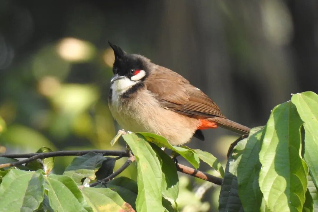 鸣禽,体长17-23cm。南方萌系长相小鸟,眼后的红色斑与白斑交相辉映,修饰成可爱的模样,头顶着一簇耸立的黑色羽冠。细心留意,其实我的臀部也是红色的哦!