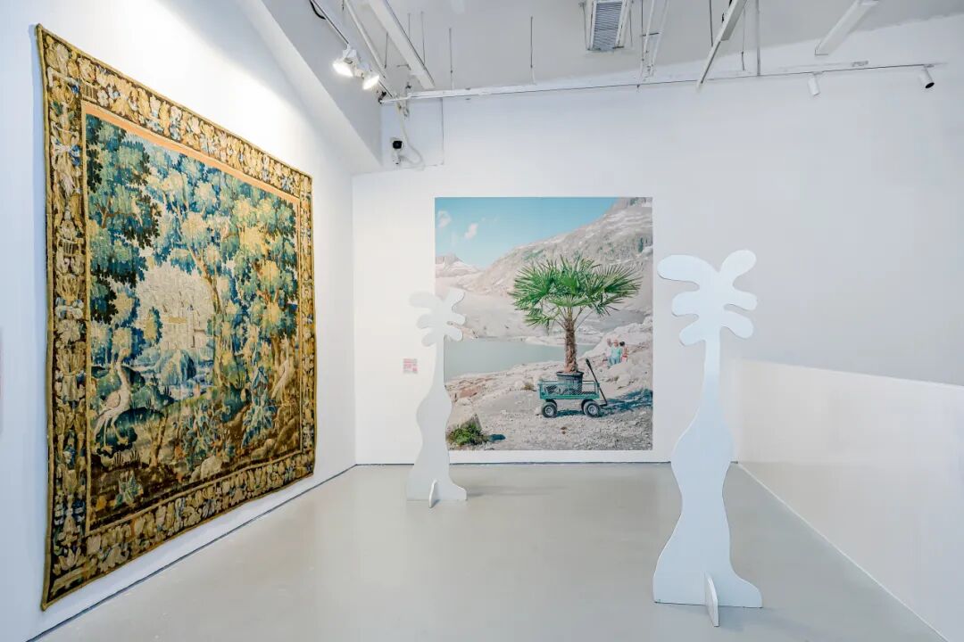 「瑞士经典设计展」展览现场,“迁徙棕榈”壁纸, 2024,Dorsa工作室(何昱飞,生于1993 年;胡畔,生于1995年;詹姆斯·霍 库拉克,生于1991年)