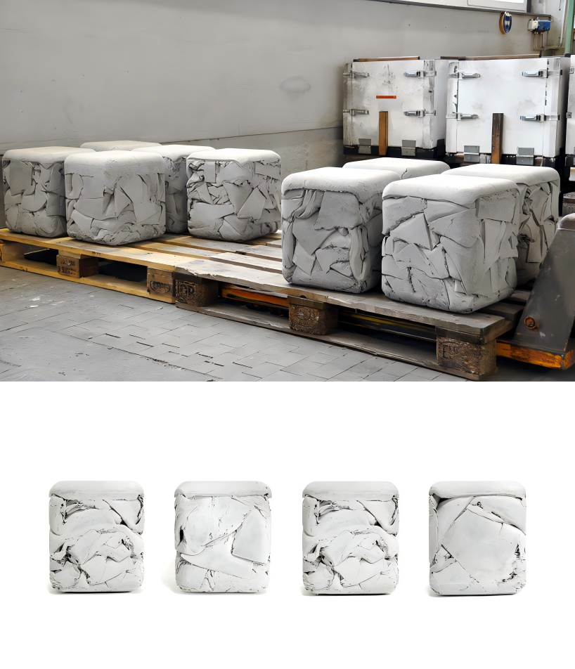 这个称为“垃圾立方”的座椅完全由通常用来制作屋顶瓦片的废弃纤维水泥制成,座椅的外观取决于每天产生的废料的状态。工厂工人把边角料扔进一个立方体形状的模具里,这些废料挤压在一起,并被晾上几个小时后成为座椅。
