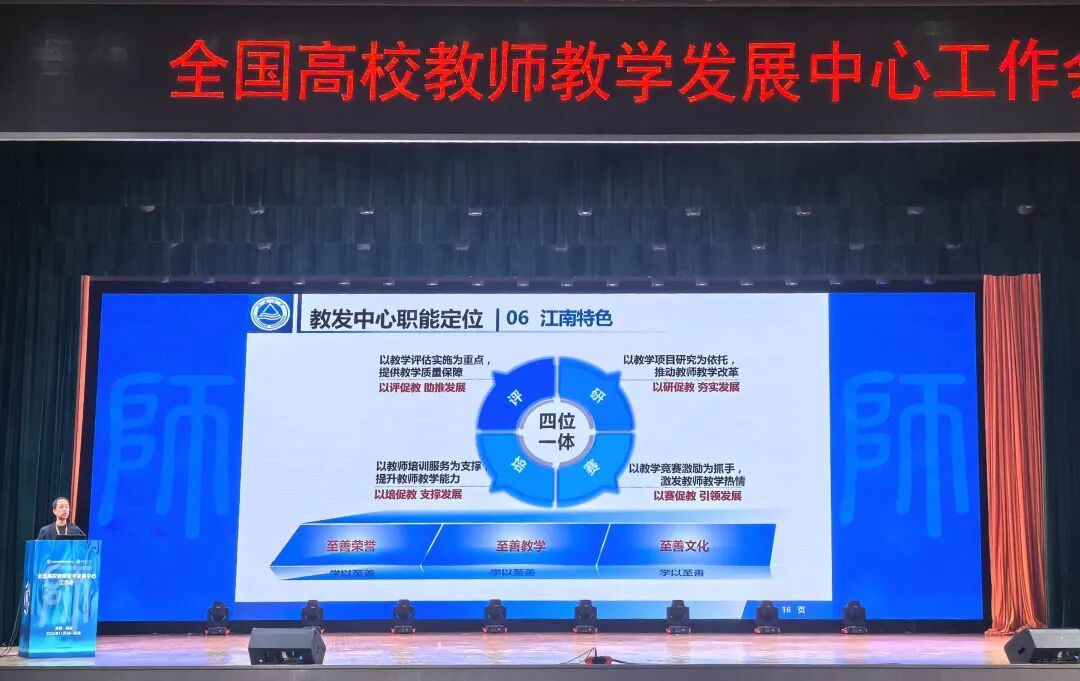 坚持分类发展,搭建多层次、分类别、全周期教师培训体系,精准提供入职、骨干、潜能教师教学指导,开展教学理念引领的“卓越讲坛”、院系定制等线下培训66场次,参培教师为3926人次。加强教师教学竞赛系列集训,在第四届江苏省高校教师教学创新大赛中取得特等奖突破(2项),并获第五届全省高校青年教师教学竞赛优秀组织奖。学校“四位一体、学以至善”教师发展体系成功入选全国教发工作典型案例,并受邀在全国教发年会做典型案例分享。![]()