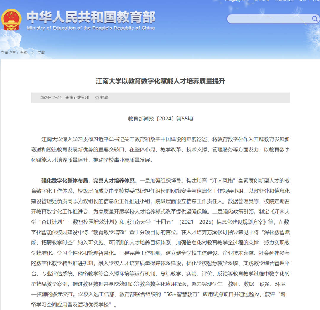 数字化教学改革经验被教育部简报刊载
