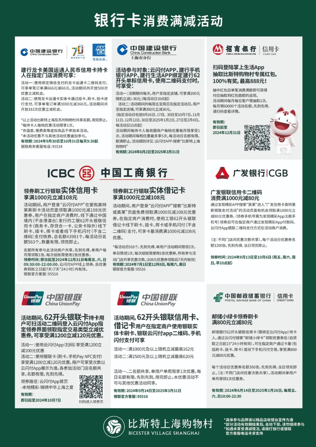 *注:银行满减活动可在购物村内指定品牌门店参与,具体请以收银台前展示的立牌为准。
