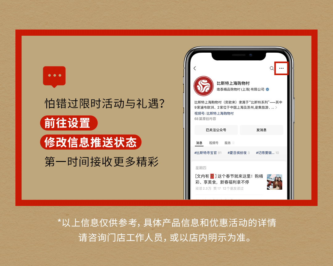 文章内容来源于公众号:比斯特上海购物村,点此可查看原文,内容版权归相关企业所有,本网站仅供交流学习。若涉及版权问题或存在侵权情况,请及时与我们联系,我们将第一时间进行删除处理。