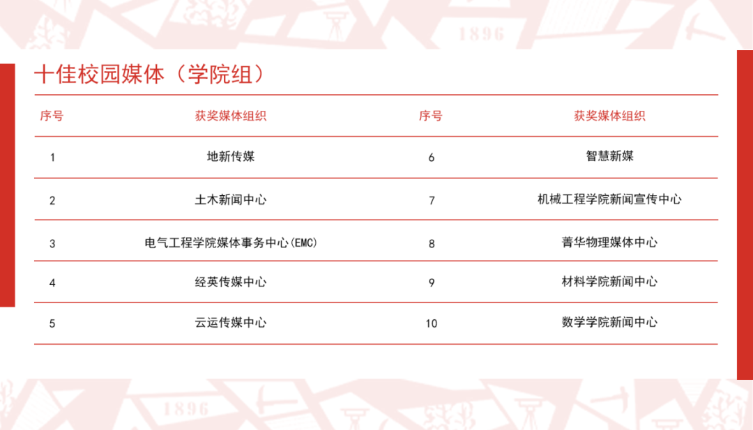 ▲校园十佳媒体(学院组)评选结果