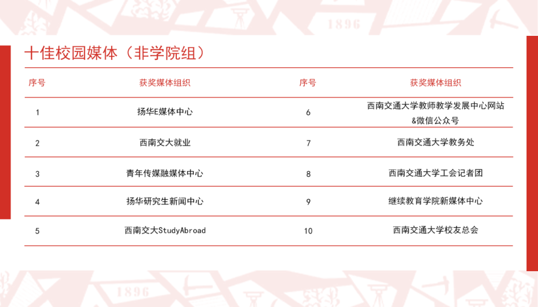 ▲校园十佳媒体(非学院组)评选结果