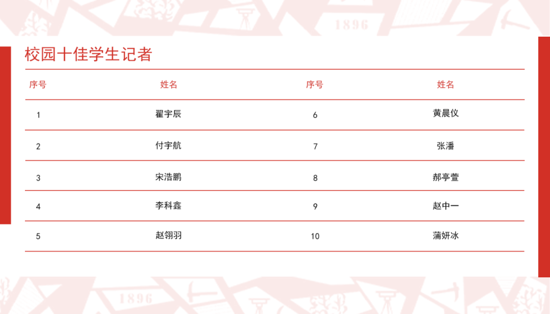 ▲校园十佳学生记者评选结果