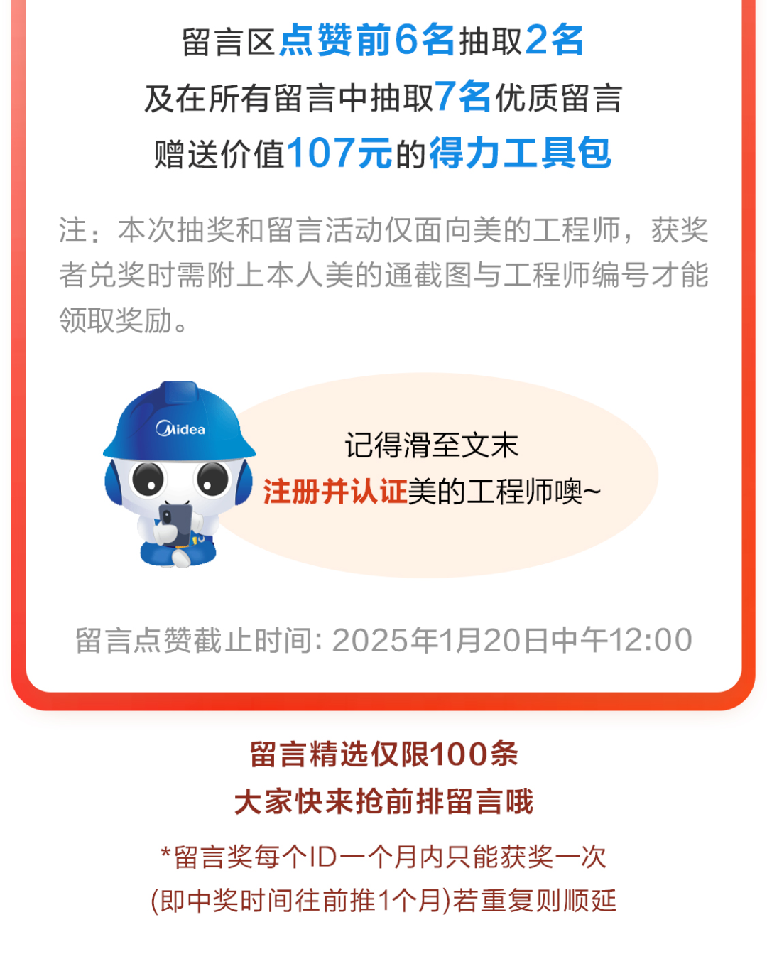 *点赞留言奖每个ID每个月只能获奖一次(即中奖时间往前推1个月),若重复则顺延。