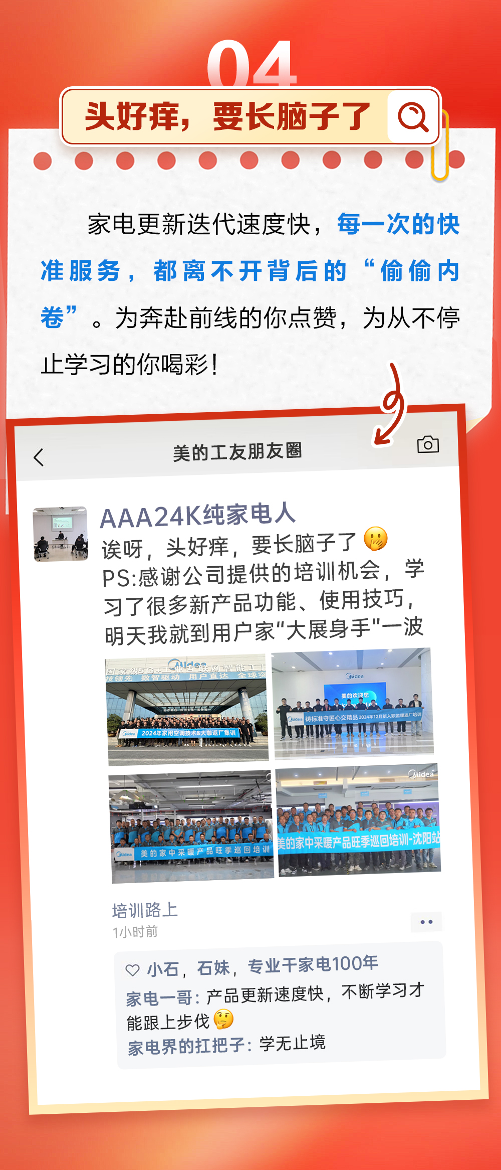 家电更新迭代速度快,每一次的快准服务,都离不开背后的“偷偷内卷”。为奔赴前线的你点赞,为从不停止学习的你喝彩!