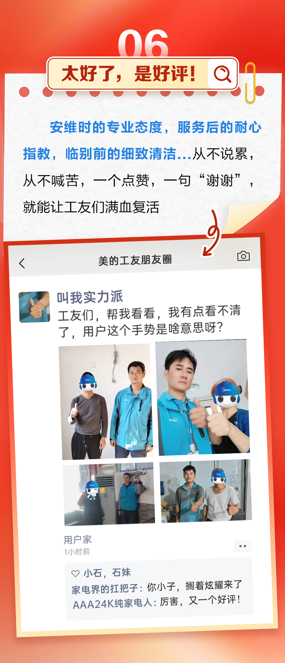 安维时的专业态度,服务后的耐心指教,临别前的细致清洁...从不说累,从不喊苦,一个点赞,一句“谢谢”,就能让工友们满血复活!