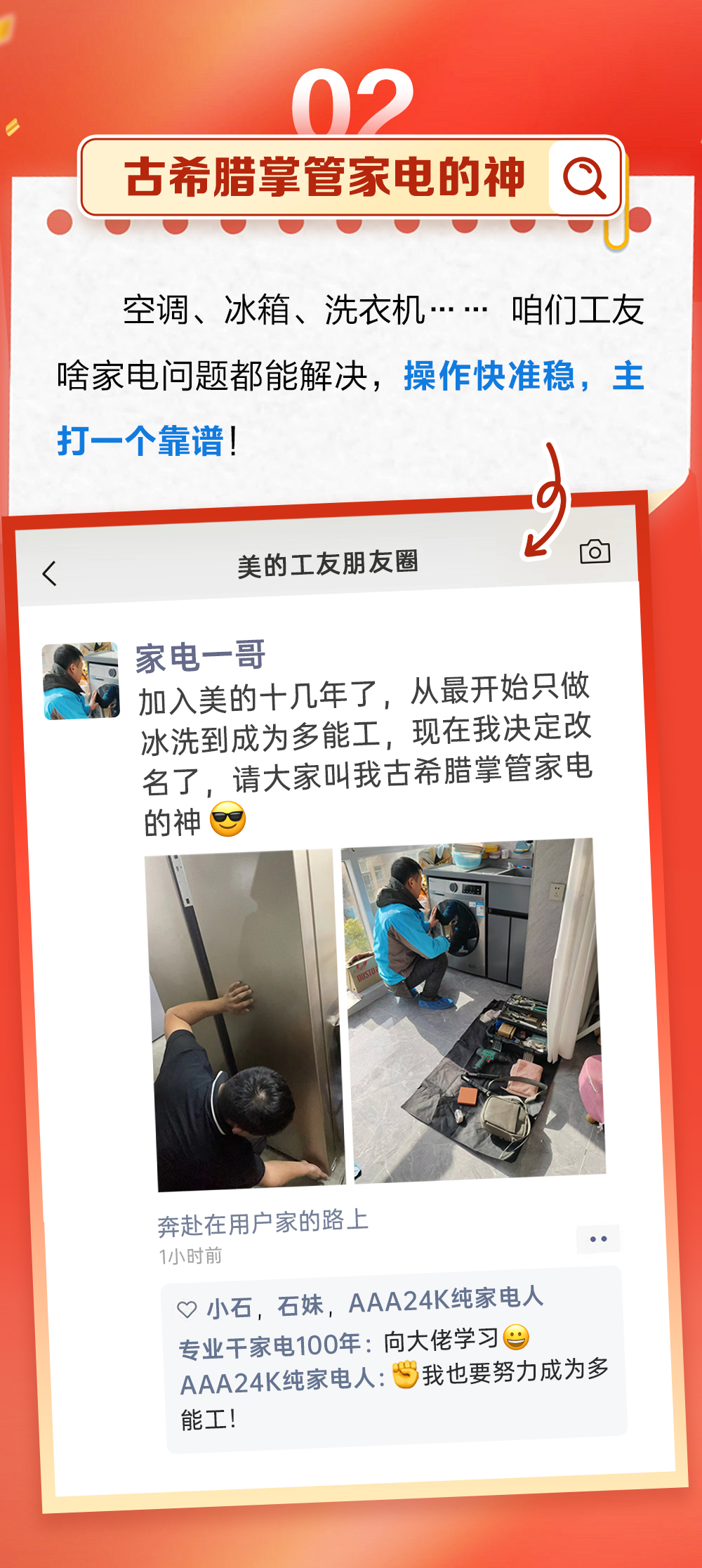 空调、冰箱、洗衣机…… 咱们工友啥家电问题都能解决,操作快准稳,主打一个靠谱!