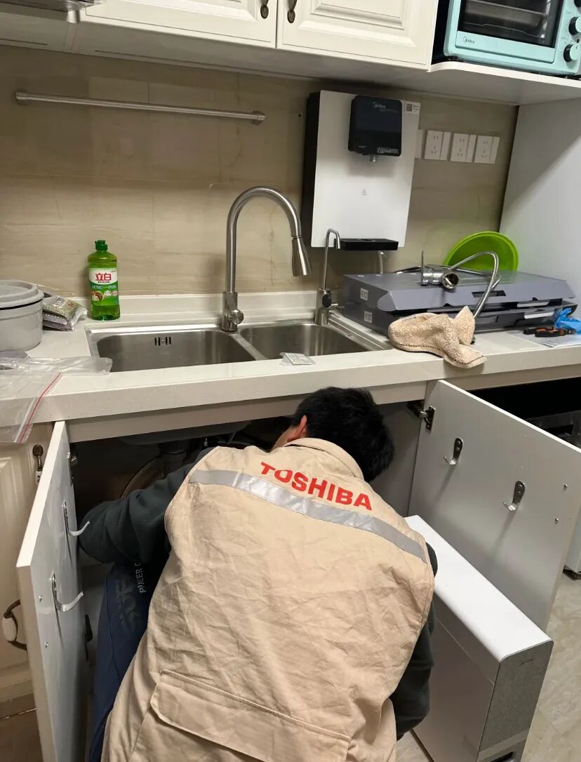用户报装在双十一期间购买的东芝洗烘一体机,两位师傅接单后准时上门。他们安装完成后,不仅细致地为用户讲解机器的使用方法,还热心主动地帮用户安装水龙头与调试地暖设备。用户对两位师傅的服务表示非常认可:“师傅们主动帮我调试了锅炉和安装抽拉式水龙头!宝藏万能师傅,真是太好了!”