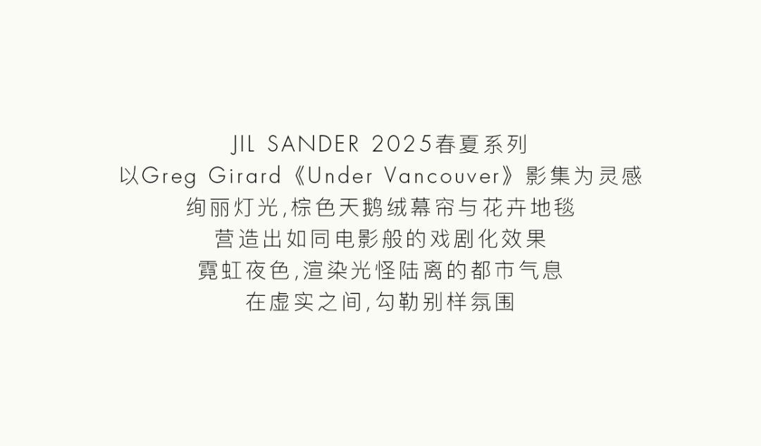 免责声明:本文内容摘自JIL SANDER品牌方文稿,所涉内容以JIL SANDER提供信息为准,与“杭州嘉里中心”无关,所涉产品、活动及优惠详情请详询品牌方并以品牌方解释为准。