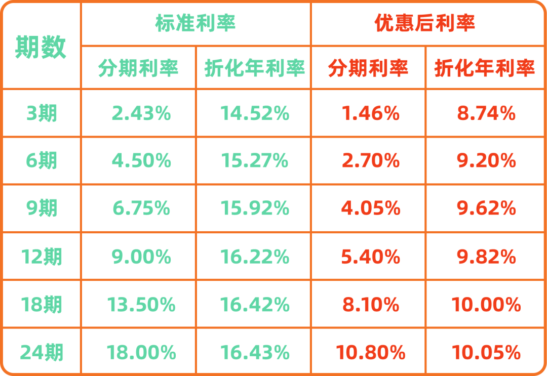分期期限灵活:根据需求选择分期期数,支持3期、6期、9期、12期、18期、24期,让您轻松安排资金。