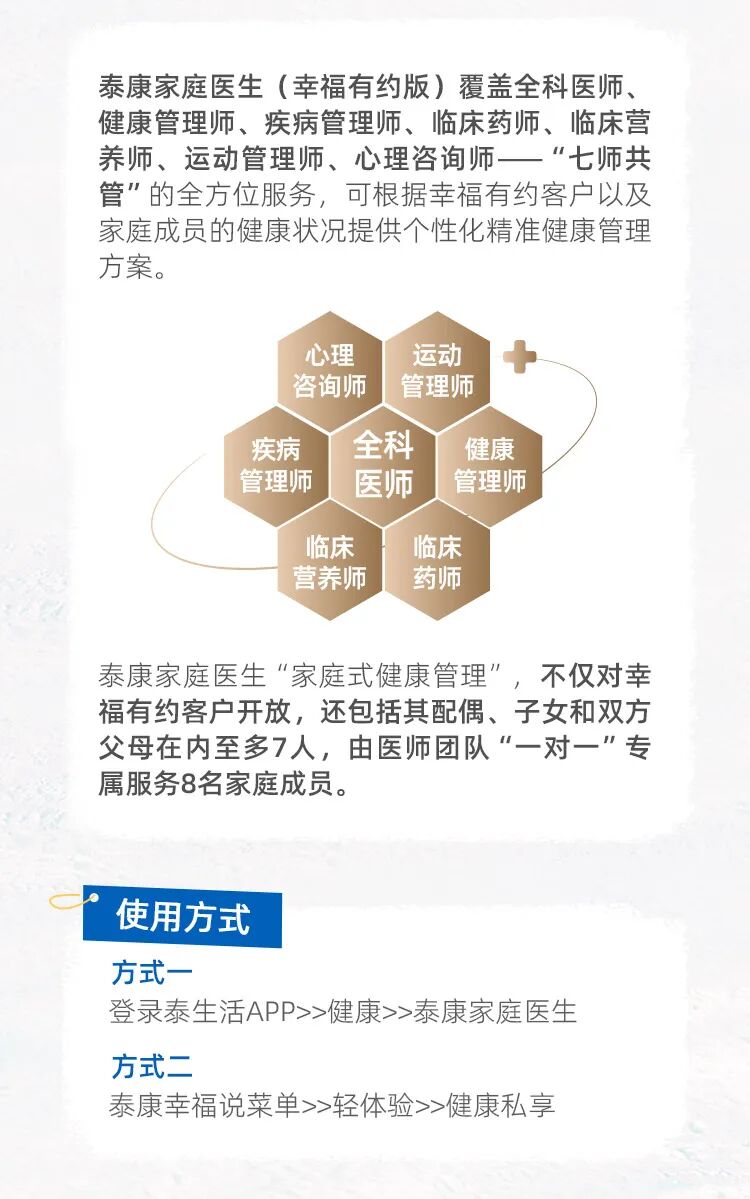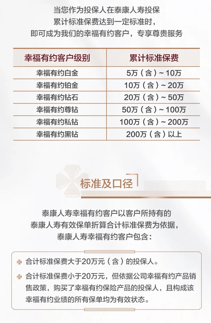 本私享服务内容有效期为2025年1月1日至12月31日,我们会根据客户需求、市场状况及公司规划等因素,对幸福有约客户服务进行调整。泰康人寿幸福有约客户五重保障,具体致电泰康人寿幸福专线400-88-95522,及泰生活APP查询为准。
