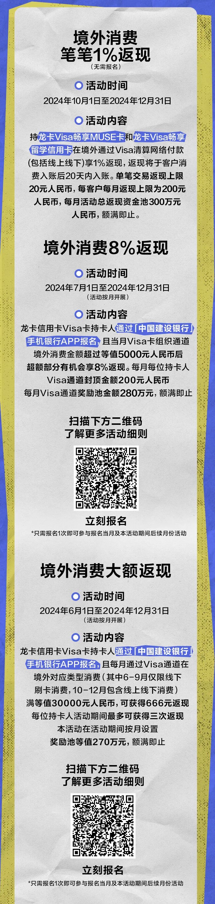 *中国建设银行仅提供信用卡支付服务,上述活动由Visa主办,活动细则以Visa官方渠道告知为准,活动商品及服务由相关商户或Visa提供。(以上内容为广告)