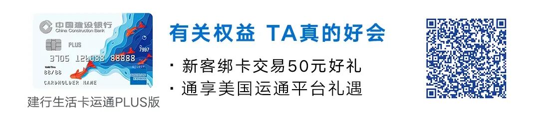 *中国建设银行仅提供信用卡支付服务,上述活动由运通主办,活动细则以运通官方渠道告知为准,活动商品及服务由相关商户或运通提供。(以上内容为广告)