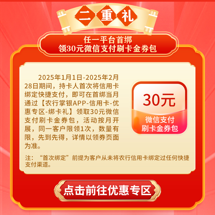 文章内容来源于公众号:农业银行信用卡,点此可查看原文,内容版权归相关企业所有,本网站仅供交流学习。若涉及版权问题或存在侵权情况,请及时与我们联系,我们将第一时间进行删除处理。