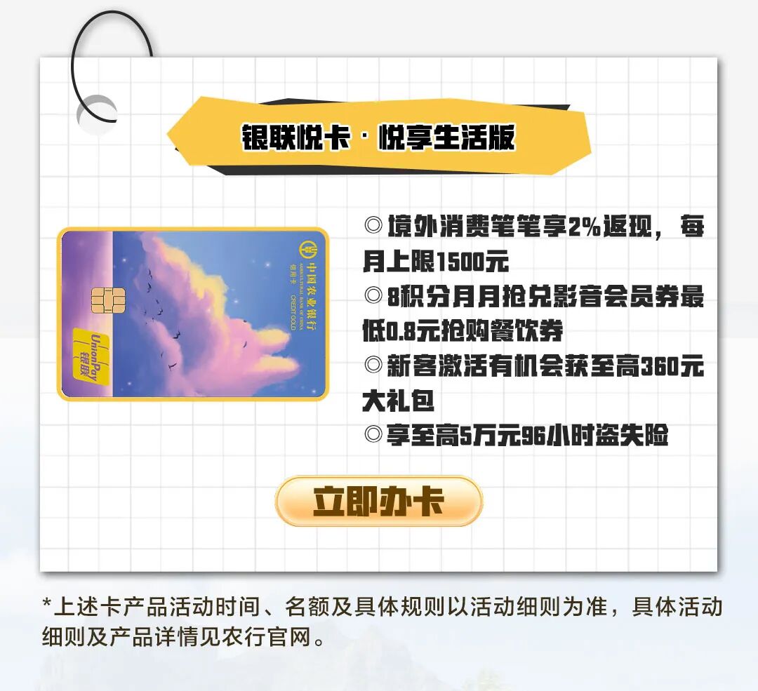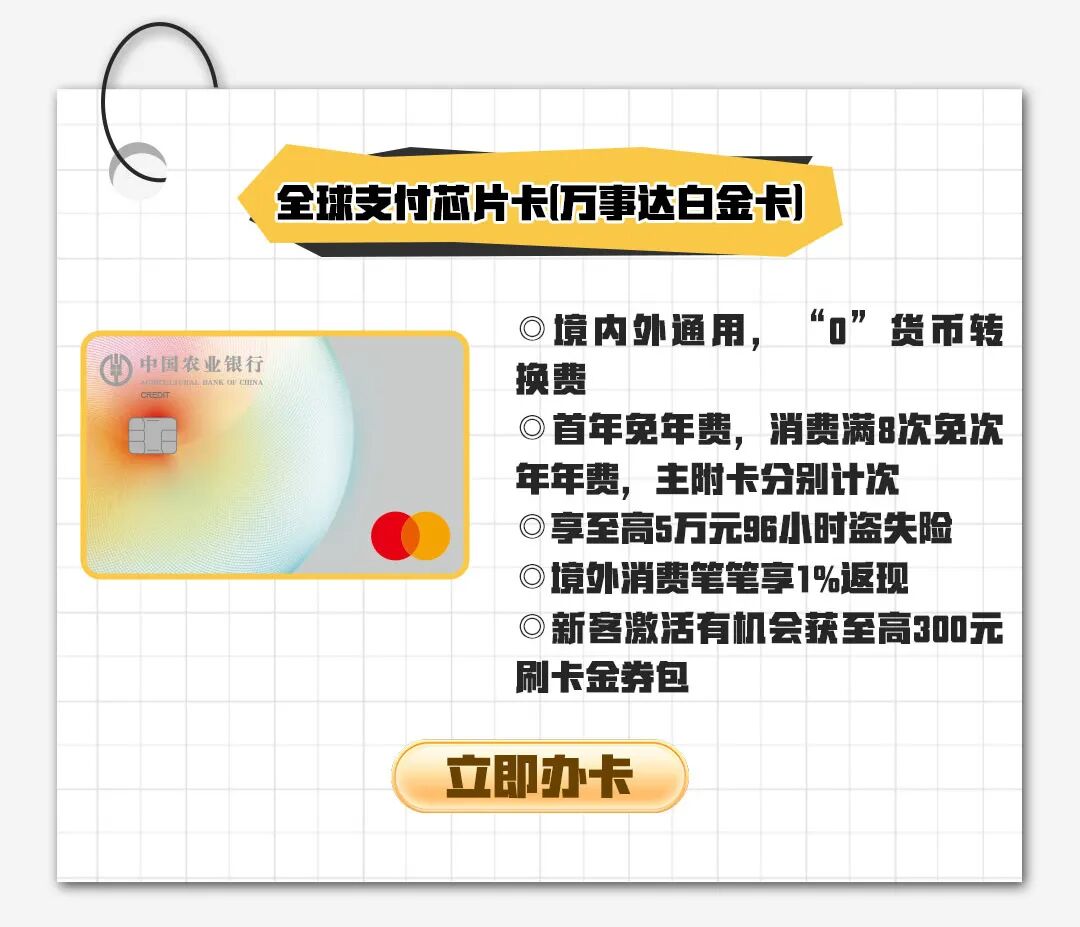 文章内容来源于公众号:农业银行信用卡,点此可查看原文,内容版权归相关企业所有,本网站仅供交流学习。若涉及版权问题或存在侵权情况,请及时与我们联系,我们将第一时间进行删除处理。