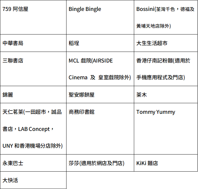 8. 除特別註明外,本推廣不可與其他優惠、商戶/會員優惠、優惠券、折扣及禮券同時使用。