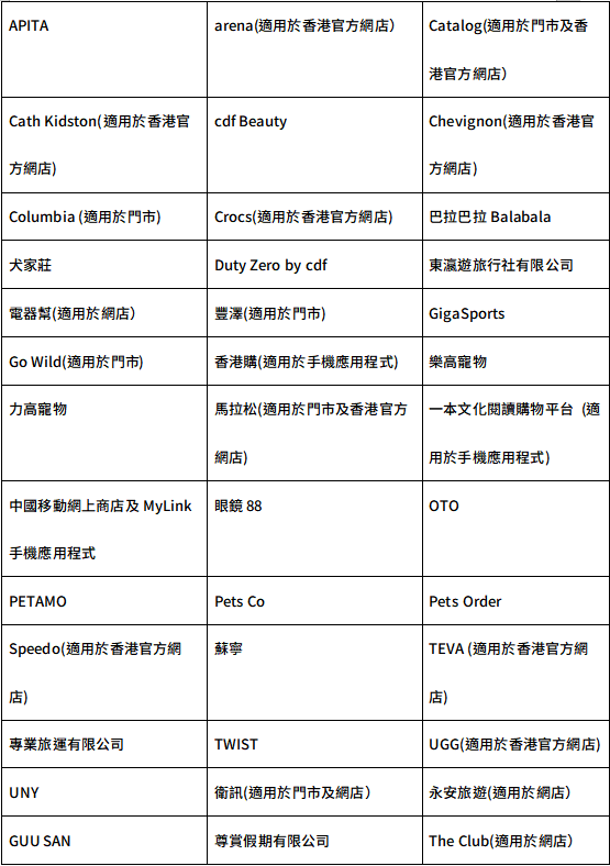3. 於推廣期內,客戶以BoC Pay於指定商戶單一消費淨額滿HK$50即減HK$5(下稱「優惠」)。指定商戶如下: