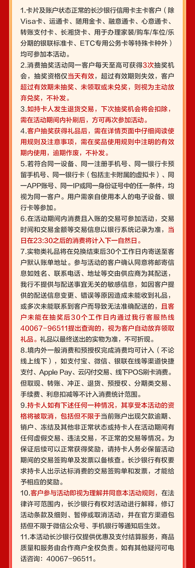 文章内容来源于公众号:长沙银行信用卡,点此可查看原文,内容版权归相关企业所有,本网站仅供交流学习。若涉及版权问题或存在侵权情况,请及时与我们联系,我们将第一时间进行删除处理。
