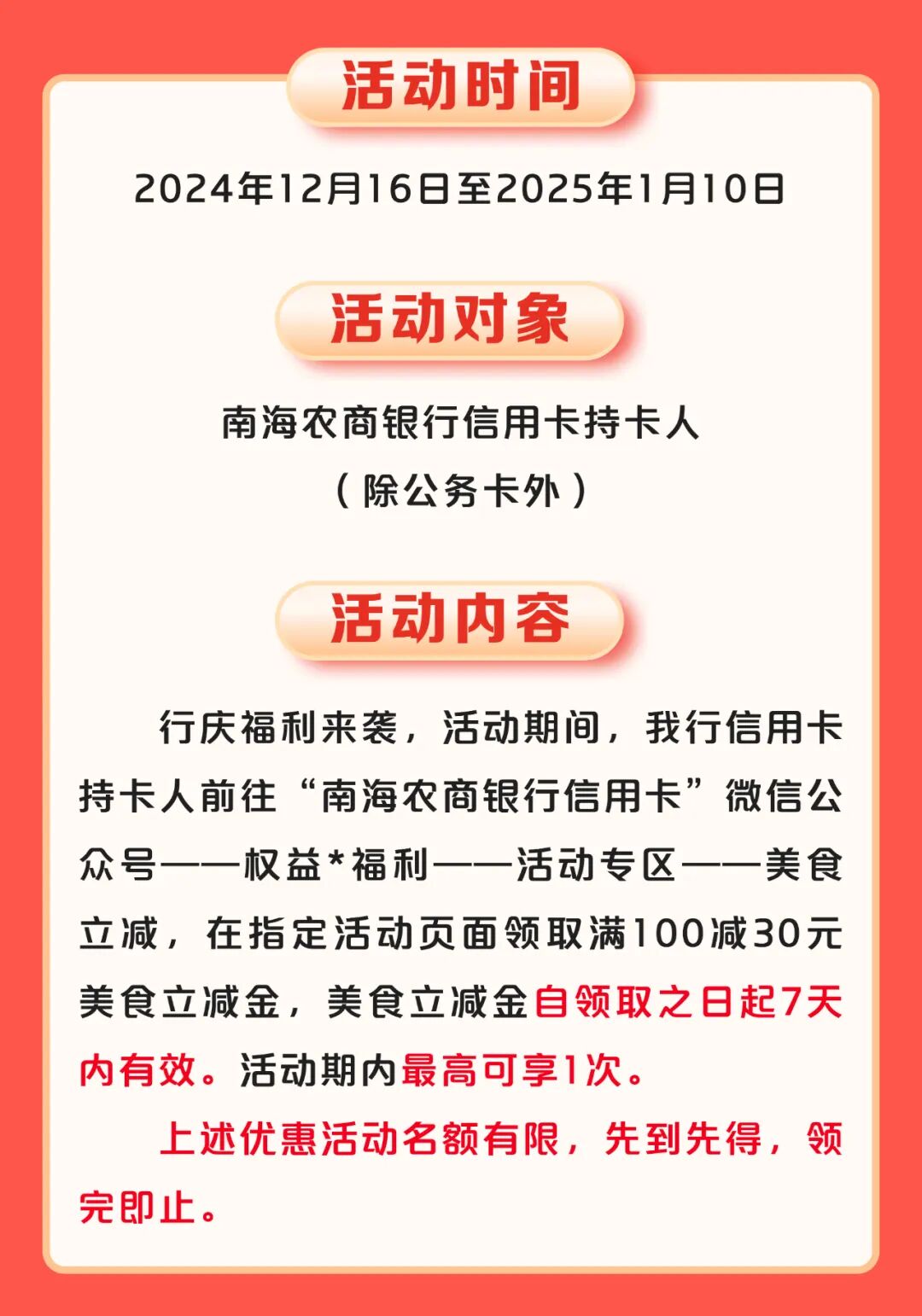 文章内容来源于公众号:南海农商银行信用卡,点此可查看原文,内容版权归相关企业所有,本网站仅供交流学习。若涉及版权问题或存在侵权情况,请及时与我们联系,我们将第一时间进行删除处理。