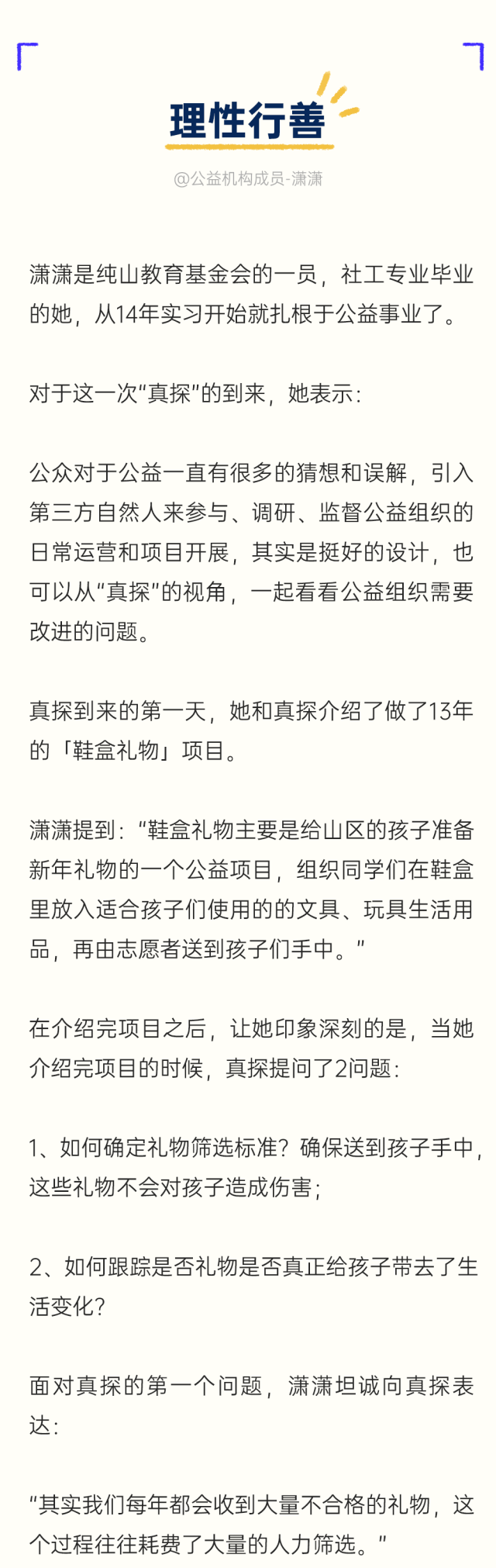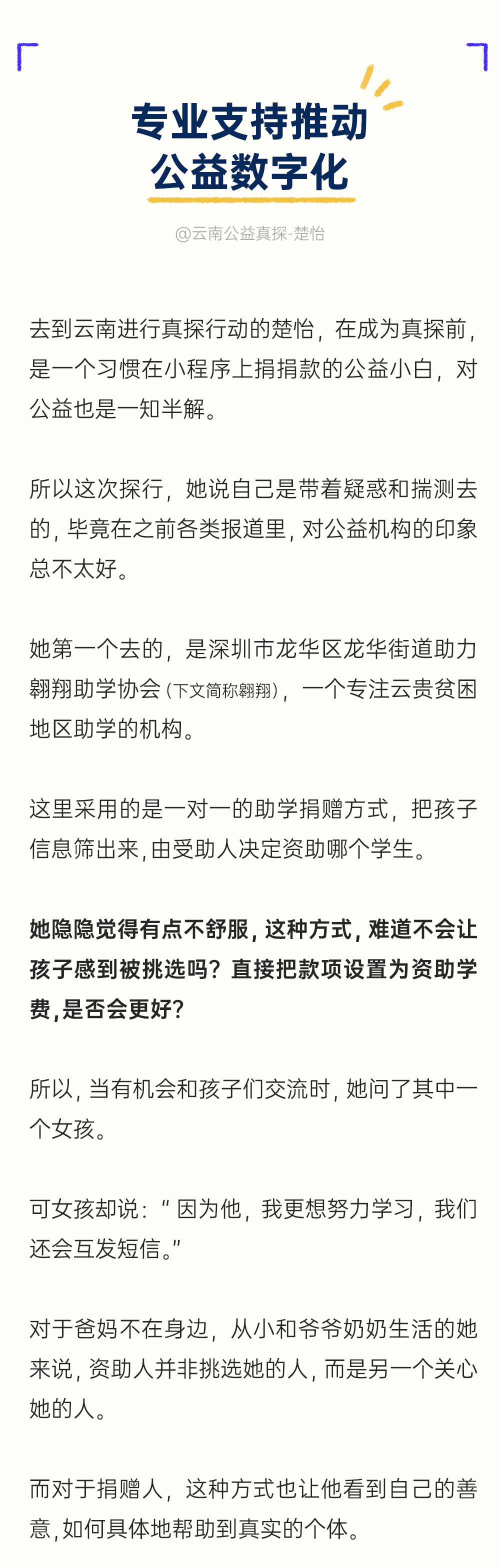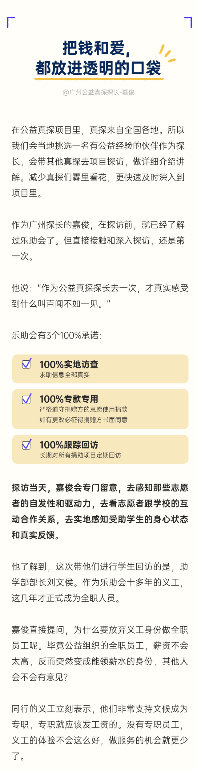 这群来自世界各地、各行各业、各怀本领的公益真探,正在他们用求真的态度和行动,破除屏幕的屏障,解开迷雾的谜底,一起推动公益对所有人可见。