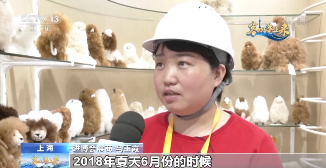 2018年,马玉霞看到了上海即将举办首届中国国际进口博览会的消息,意识到这是展示羊驼毛玩偶的好机会,于是立刻着手报名参会。