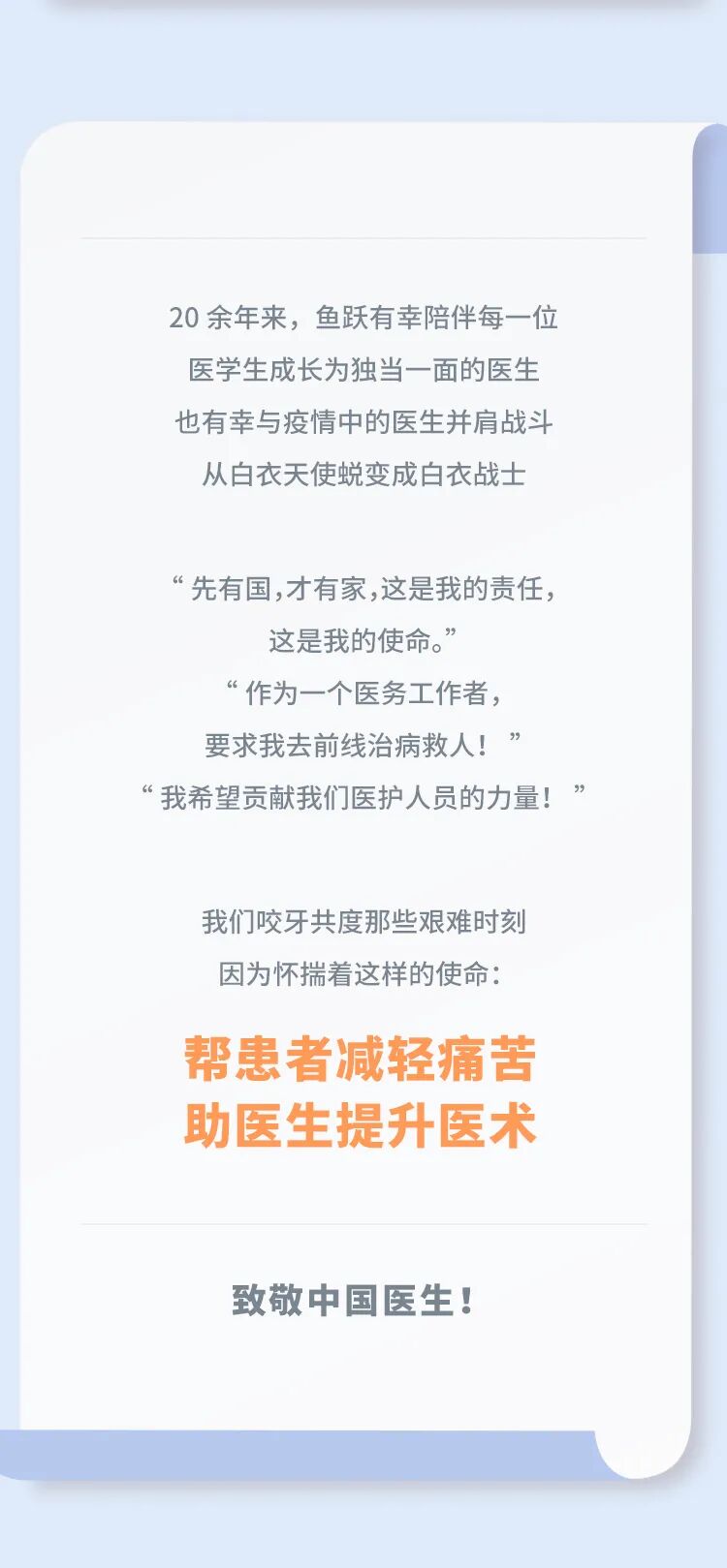摘要:鱼跃医疗致敬中国医生