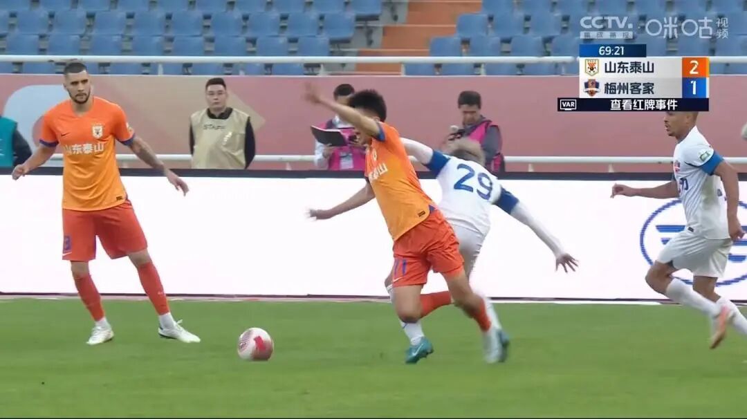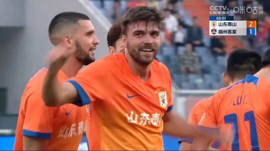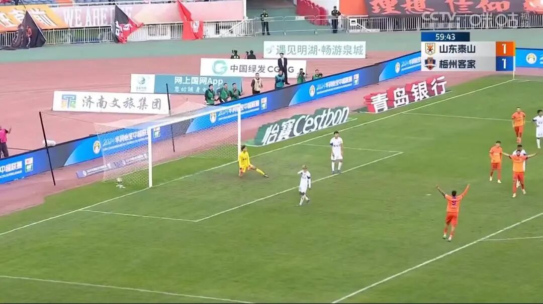 第43分钟,马里前点抢射破门,泰山队1-1梅州客家。