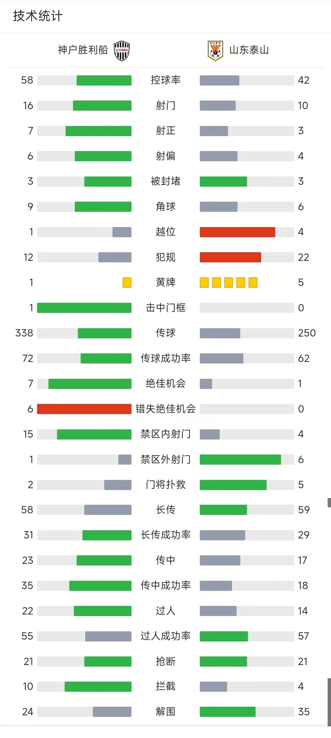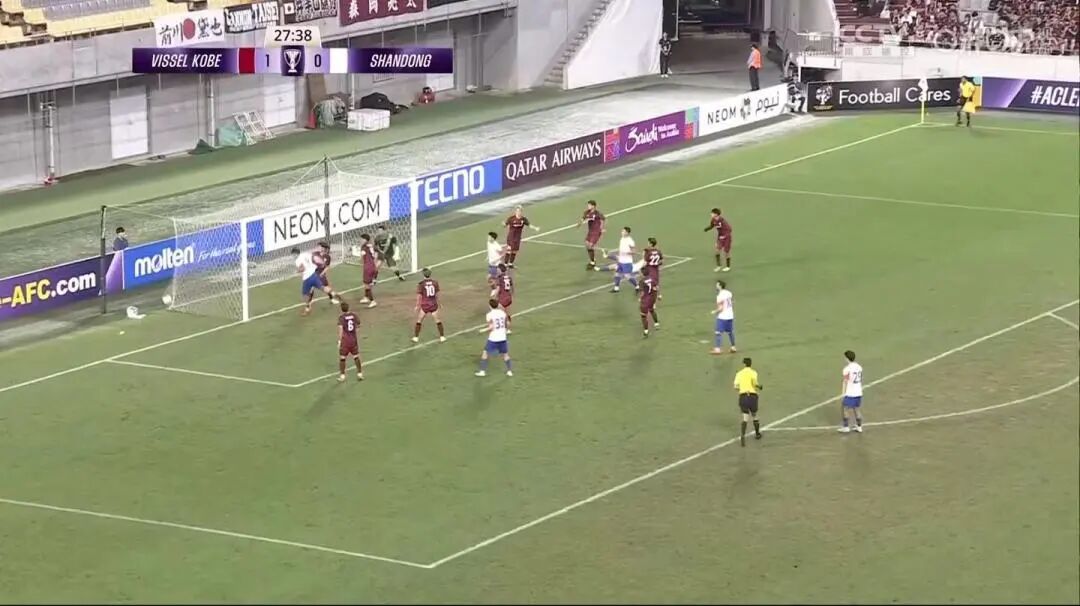 最终全场比赛结束,泰山队客场1-2神户胜利船。