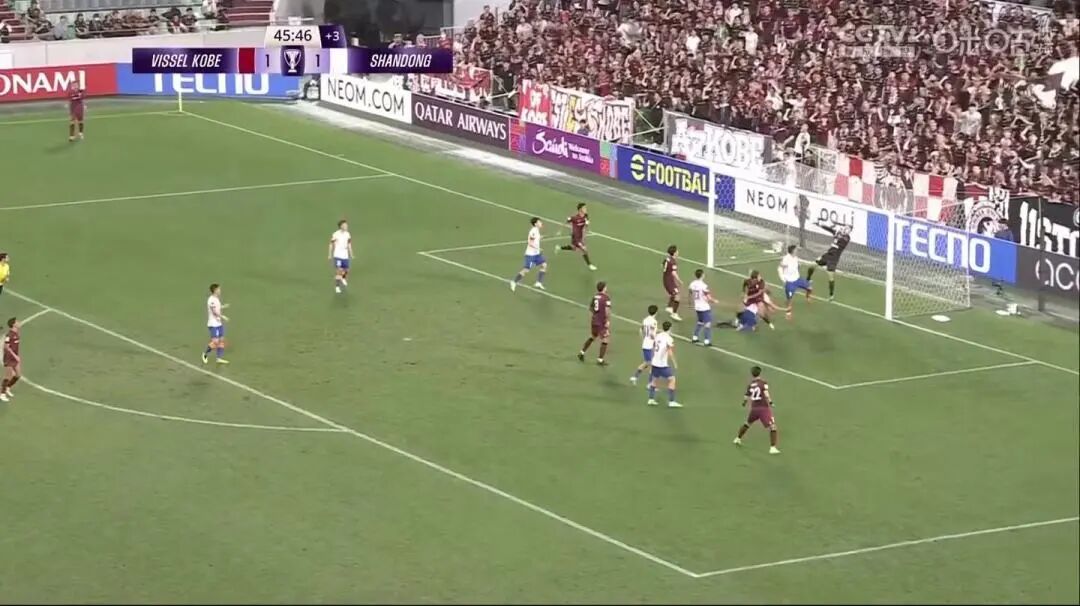第15分钟,神户胜利船角球开出,宫代大圣头球破门,神户胜利船1-0泰山队。