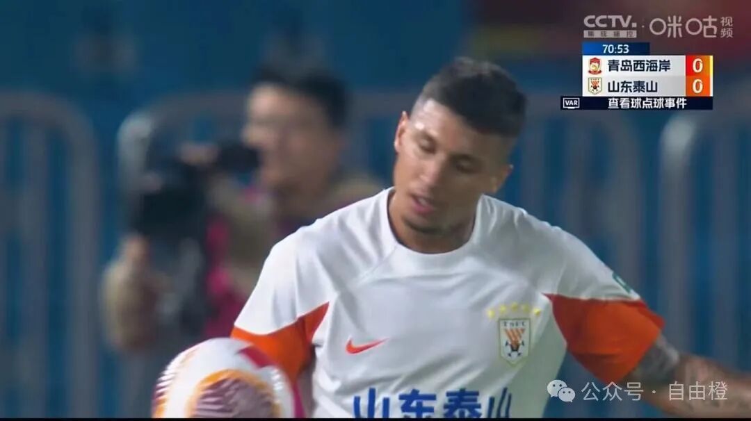 第32分钟,青岛西海岸球员赵宏略对陈蒲犯规,爱德华多吃到黄牌。看过VAR后,爱德华多黄牌收回,黄牌给回赵宏略。