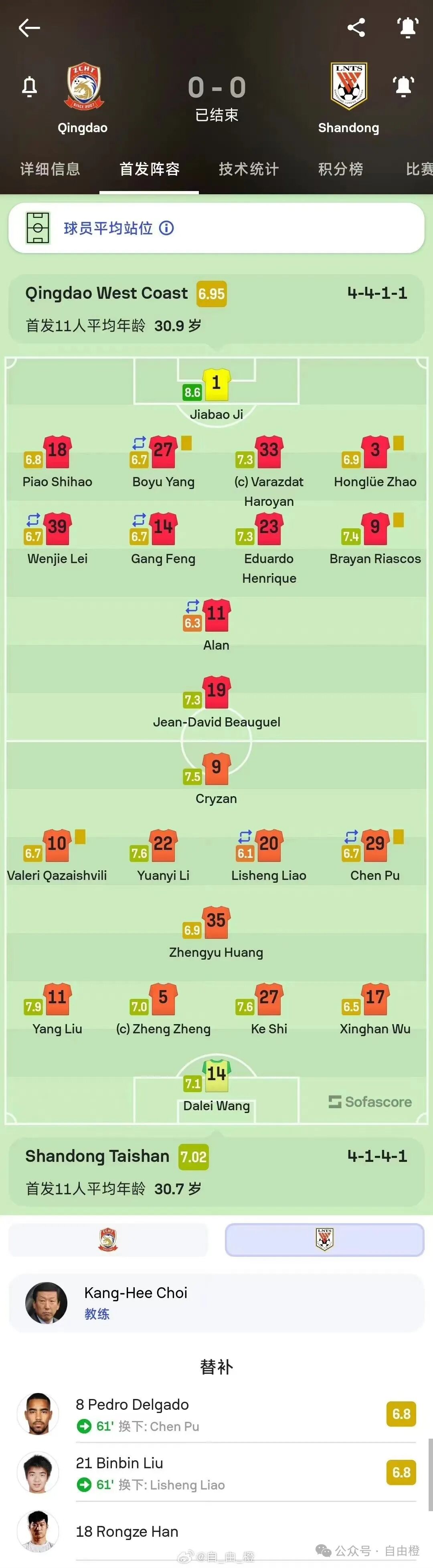 最终全场比赛结束,泰山队客场0-0青岛西海岸。