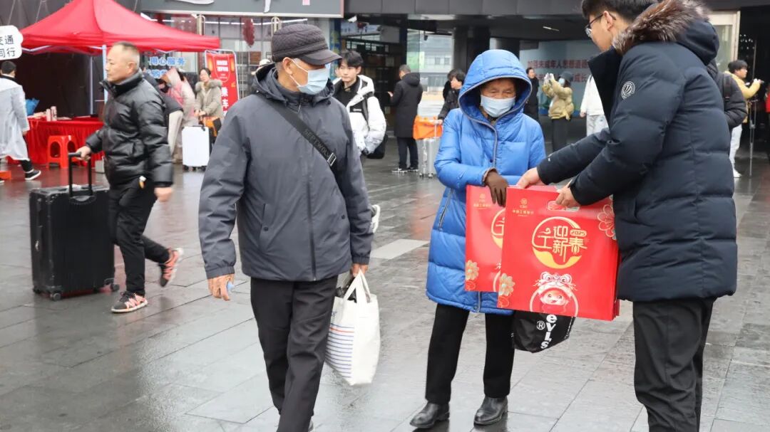 2025年春运首日,工行福建宁德海滨支行受邀前往宁德动车站参加春运启动仪式,向返乡群众、新市民传递金融温暖,营造平安祥和的新春氛围。现场,工行员工为等候列车的乘客热情地提供咨询指引、秩序维护等服务,并发放春联、送上新年福袋、讲解金融知识,为返乡乘客送上祝福。